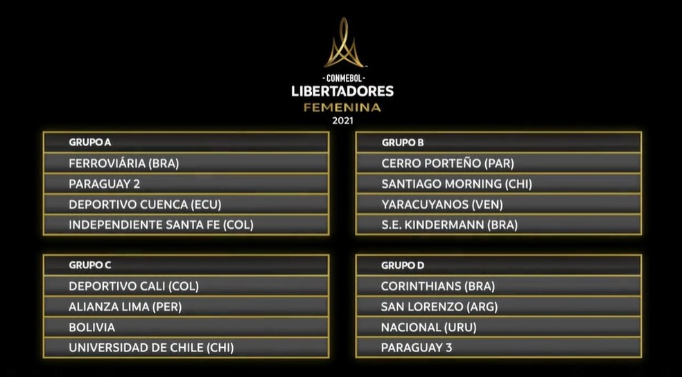 Confira a tabela da Copa Libertadores de futebol feminino 2021 que conta com 16 participantes três deles do Brasil. 04 Nov Quinta-feira 17h30. Atual campeão o Corinthians veio de duas goleadas na competição e viu seu primeiro jogo mais.